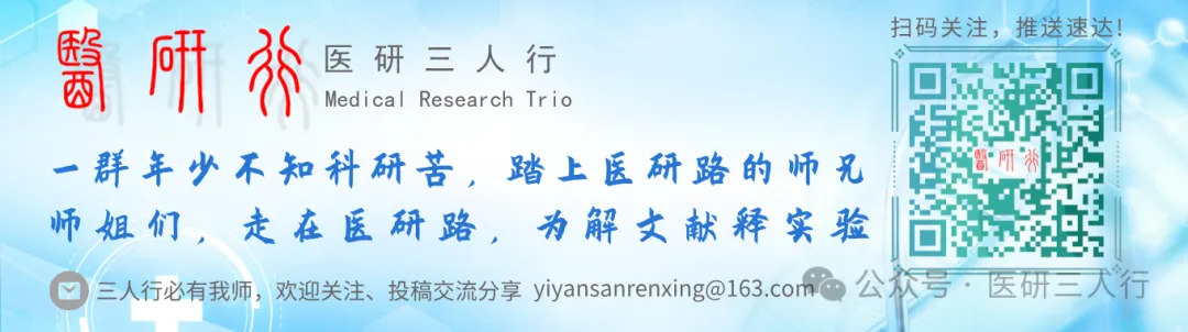 《医研三人行》公众号推送文章仅为学术交流使用,仅供读者参考。公众号中“原创”标识仅代表原创编译之作,不代表本公众号对文本主张版权。版权归文章作者所有。