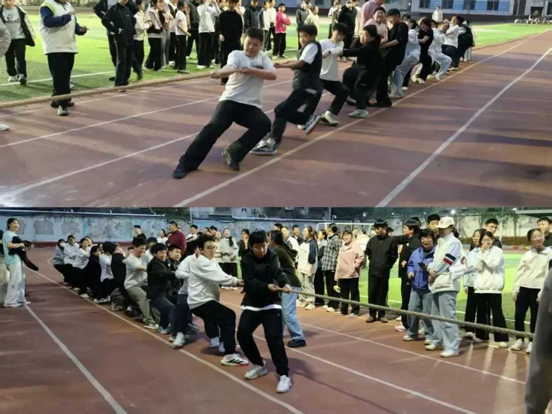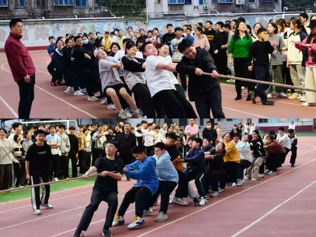 比赛过程中,许多感人瞬间令人动容:有的同学手掌磨破了皮仍咬牙坚持;有的班级在0:1落后的情况下不抛弃不放弃,连扳两局实现逆转;场边啦啦队喊哑了嗓子仍在为班级呐喊……一根长长的拔河绳,凝聚着班级的智慧与力量,承载着同学们的激情与梦想。