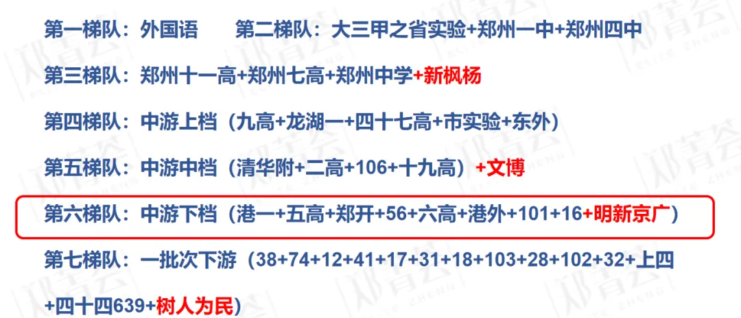 上一段咱们写了一下郑州一批次高中下游13家的上下层,分析了每个高中的优势和劣势,今天我们来写一下郑州一批次高中的中游下层8所。