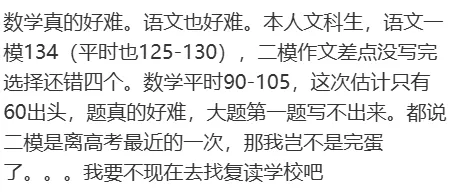 今年二模难度系数约0.58(高考常规难度系数0.65左右),尤其是数学、语文,刻意增加了计算量、阅读量和思维门槛。比如数学,第一道大题就设置了思维陷阱,后面的中档题也加大了计算复杂度;语文阅读量比往年增加30%,作文偏向现实情境,不套模板很难拿高分。这种难度设置,不是为了“为难”大家,而是为了模拟高考的“选拔性”——高考本身就是择优录取,会有一定比例的难题区分考生层次,二模提前用偏难的试卷“施压”,就是让大家提前适应这种高压场景。