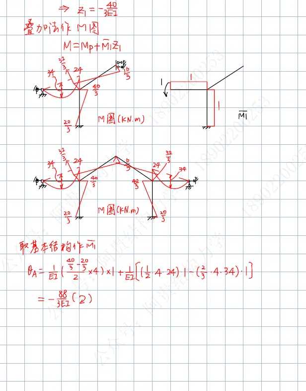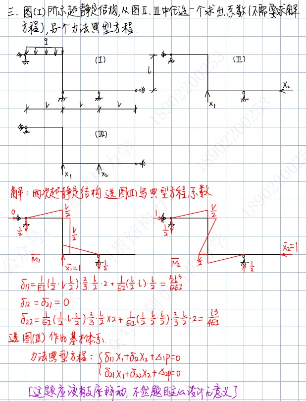 第三题:力法求解超静定结构,计算系数和典型方程;【应该有支座移动才对】