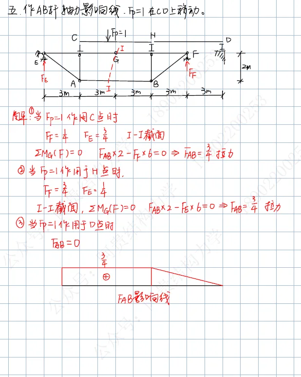 第五题:组合结构在间接荷载作用下指定杆件的影响线;