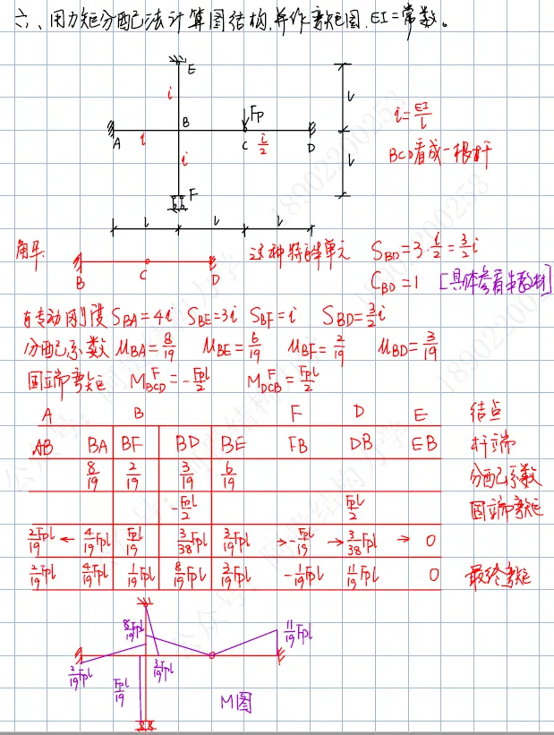 第六题:力矩分配法求解超静定结构,并作弯矩图;