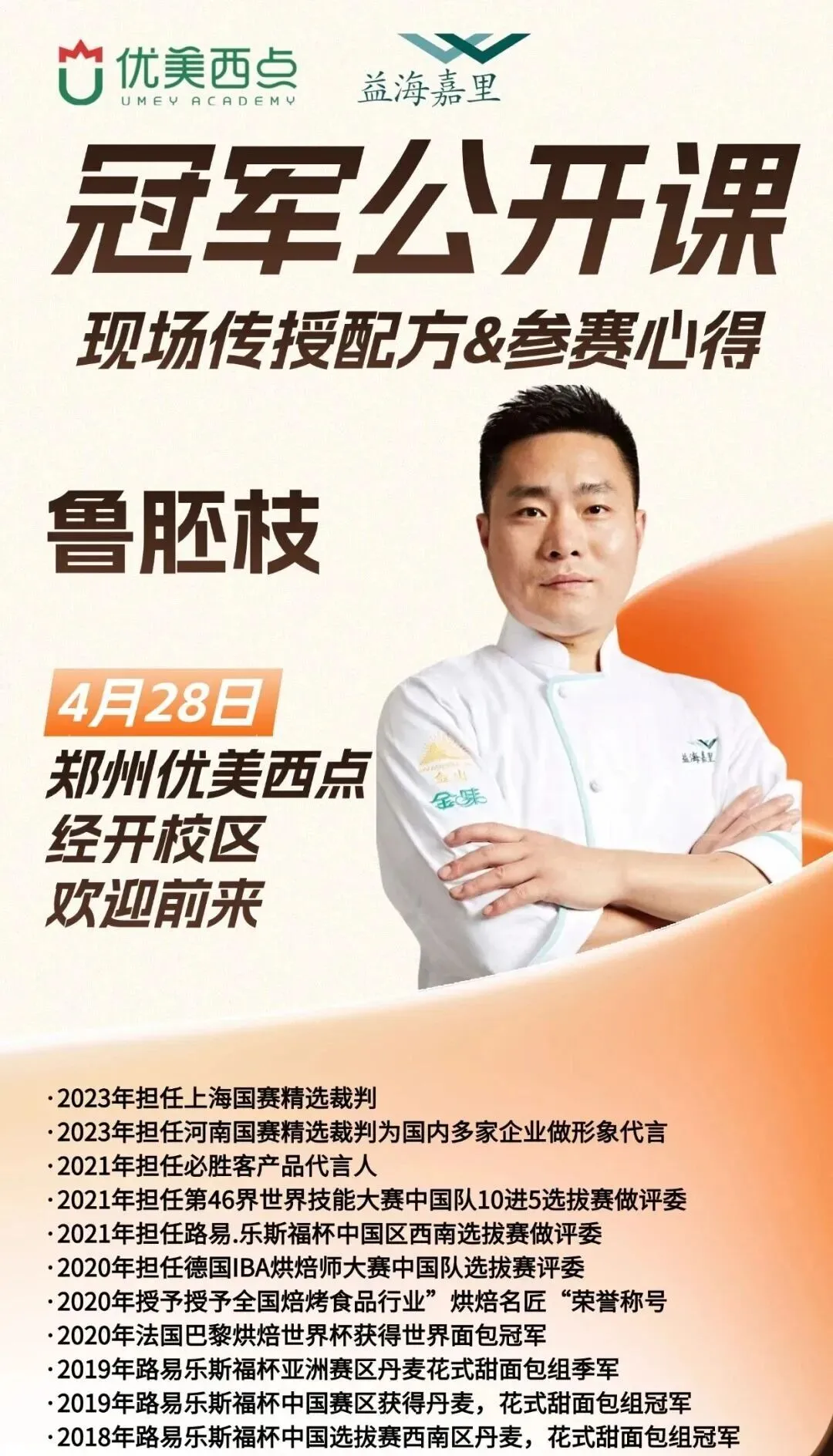 4月28日,一场专为烘焙人打造的冠军大师公开课,将在优美西点经开校区重磅开启。如果你是烘焙爱好者、西点从业者,或者正想入行却苦于没有方向,这堂课你一定不能错过。