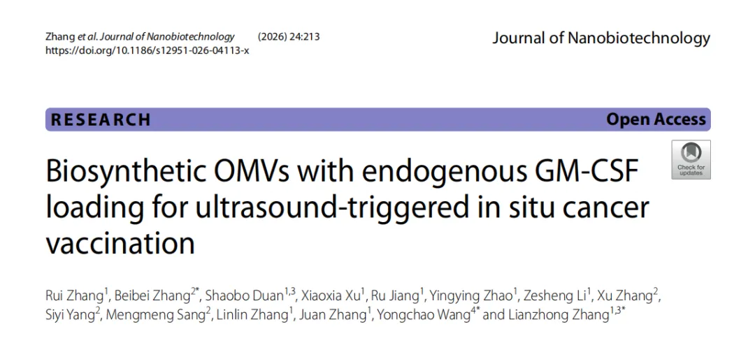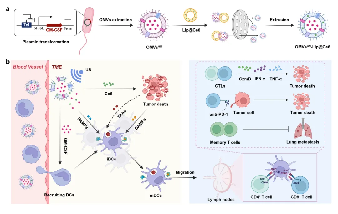 文章题目:Biosynthetic OMVs with endogenous GM-CSF loading for ultrasound-triggered in situ cancer vaccination