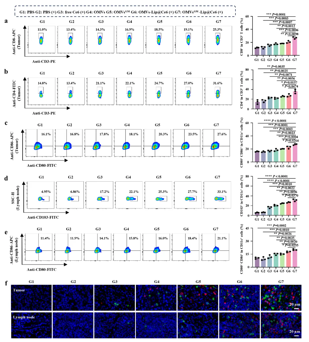OMVsᴳᴹ-Lip@Ce6促进DC的募集、成熟、抗原交叉呈递以及T细胞的初始激活