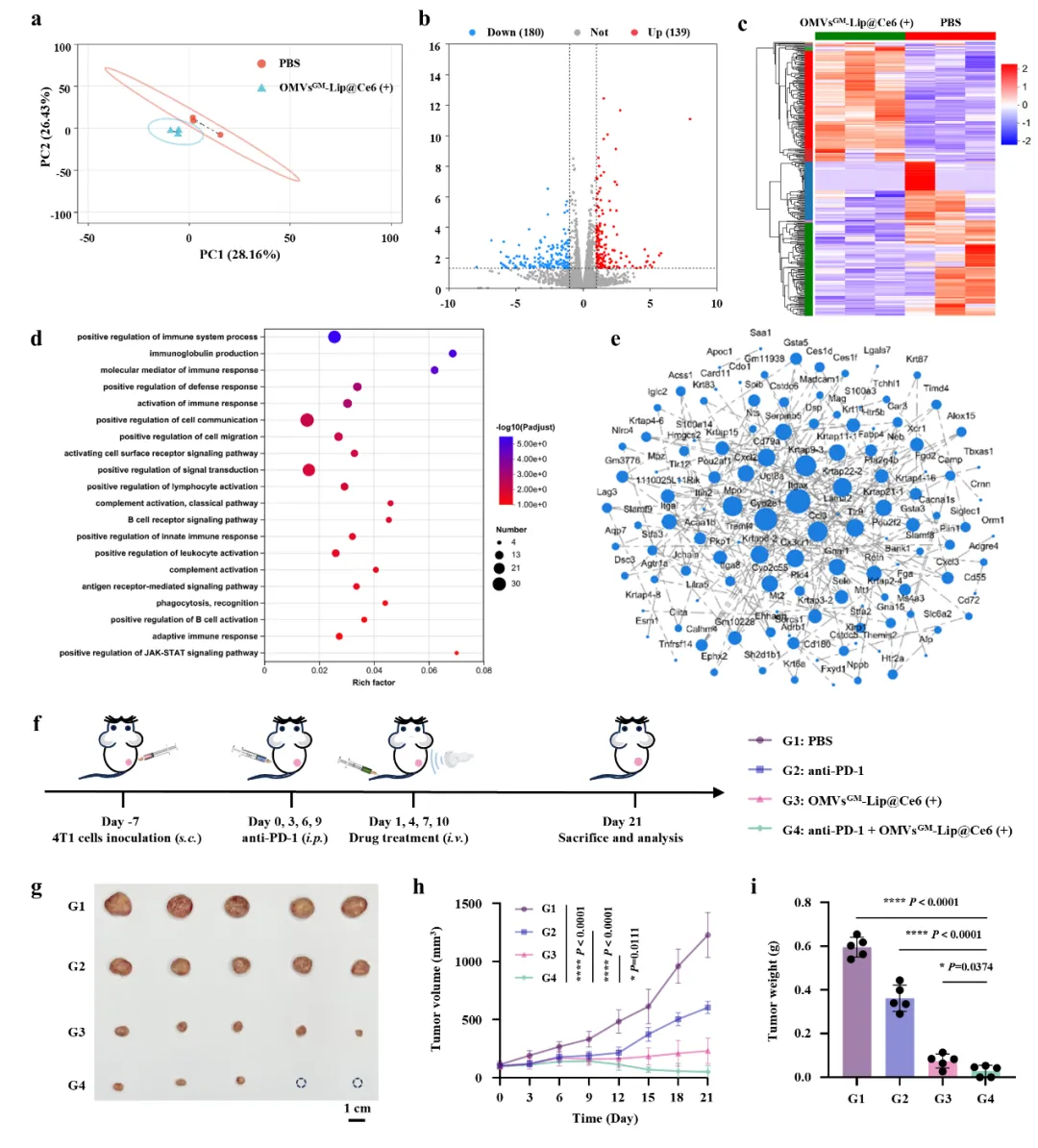 转录组学分析及OMVsᴳᴹ-Lip@Ce6联合抗PD-1治疗的抗肿瘤疗效