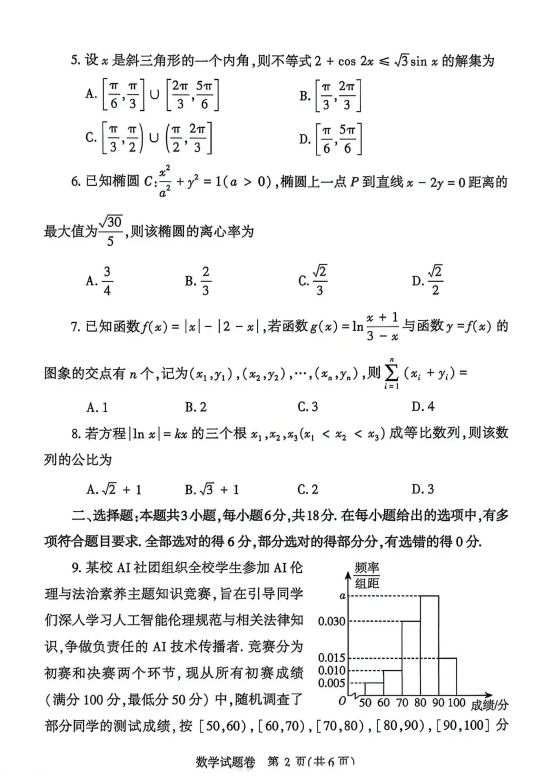 2026 届郑州市普通高中高三年级4月第二次质量预测数学试卷及答案