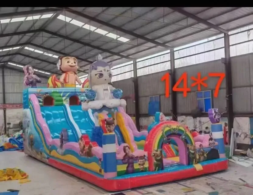 充气城堡大滑梯:环保PVC材质,卡通造型吸睛,蹦跳攀爬超安全,庙会、公园摆摊爆款。