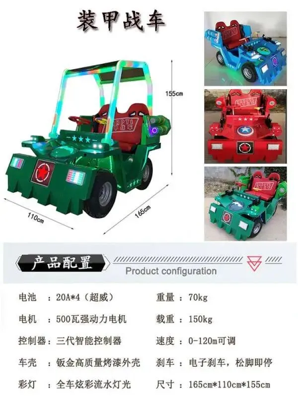 亲子碰碰车:双人乘坐、炫酷外观、防撞设计,大人小孩都能玩,营收翻倍。