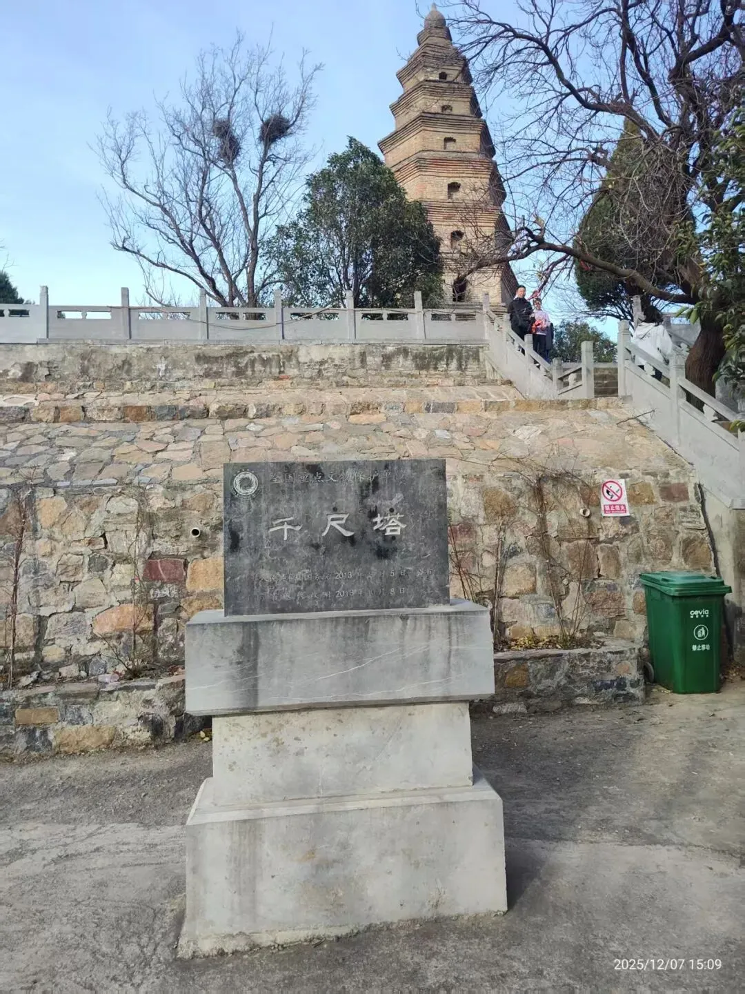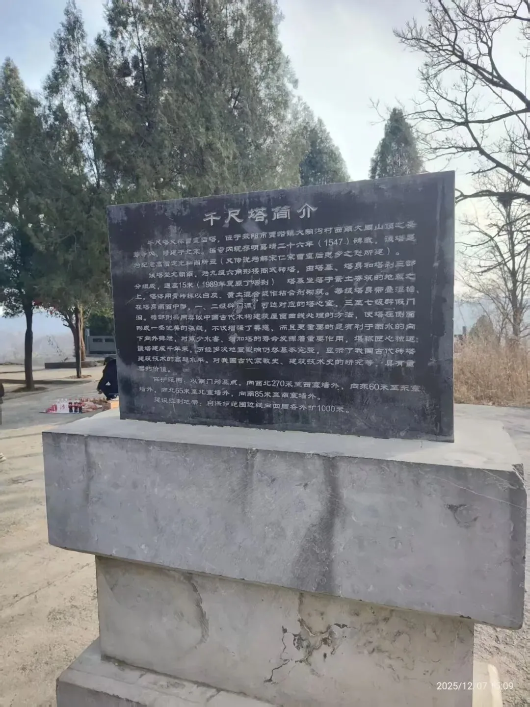 在郑州,如果你只有一天闲暇,又想避开人人人的热门景区,那么这个私藏许久的宝藏目的地,一定不要错过。从郑州出发,沿陇海西路向西约一小时车程,便进入了荥阳贾峪镇的丘陵地带。随着导航提示“前方即将到达”,最后一段路会骤然收窄——仅容一车通行的盘山小径(车技差,或车子底盘低的,慎重上山,建议将车停山下),一侧贴着崖壁,一侧是蓊蓊郁郁的杂树林。如果你和我最初一样,因难觅路而心生退意,请一定要坚持到最后。千尺塔简介碑文