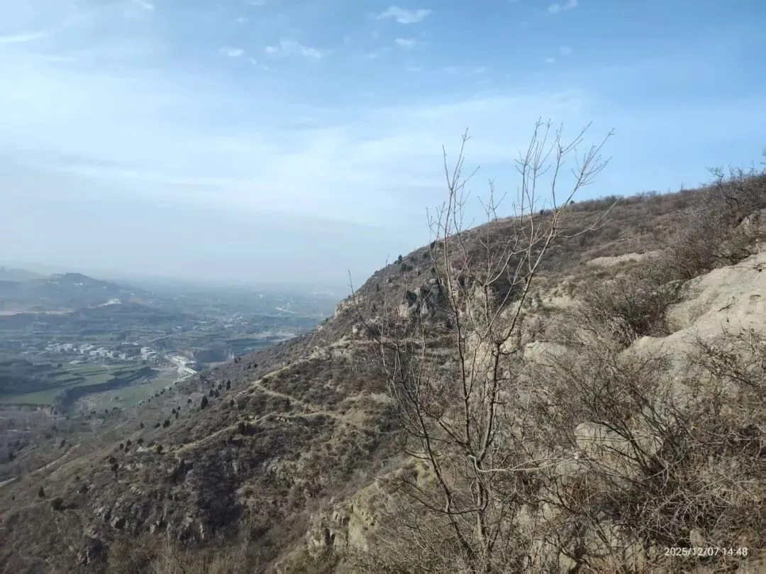 冬天的大周山,褪去了所有色彩,却显露出最骨相的一面。树叶落尽,山的轮廓格外清晰;枯草瑟瑟,古塔孤绝挺秀。这时候来,拍出的照片自带一种水墨般的苍凉与厚重——不是色彩斑斓的“网红风”,却更加耐看。塔山南望