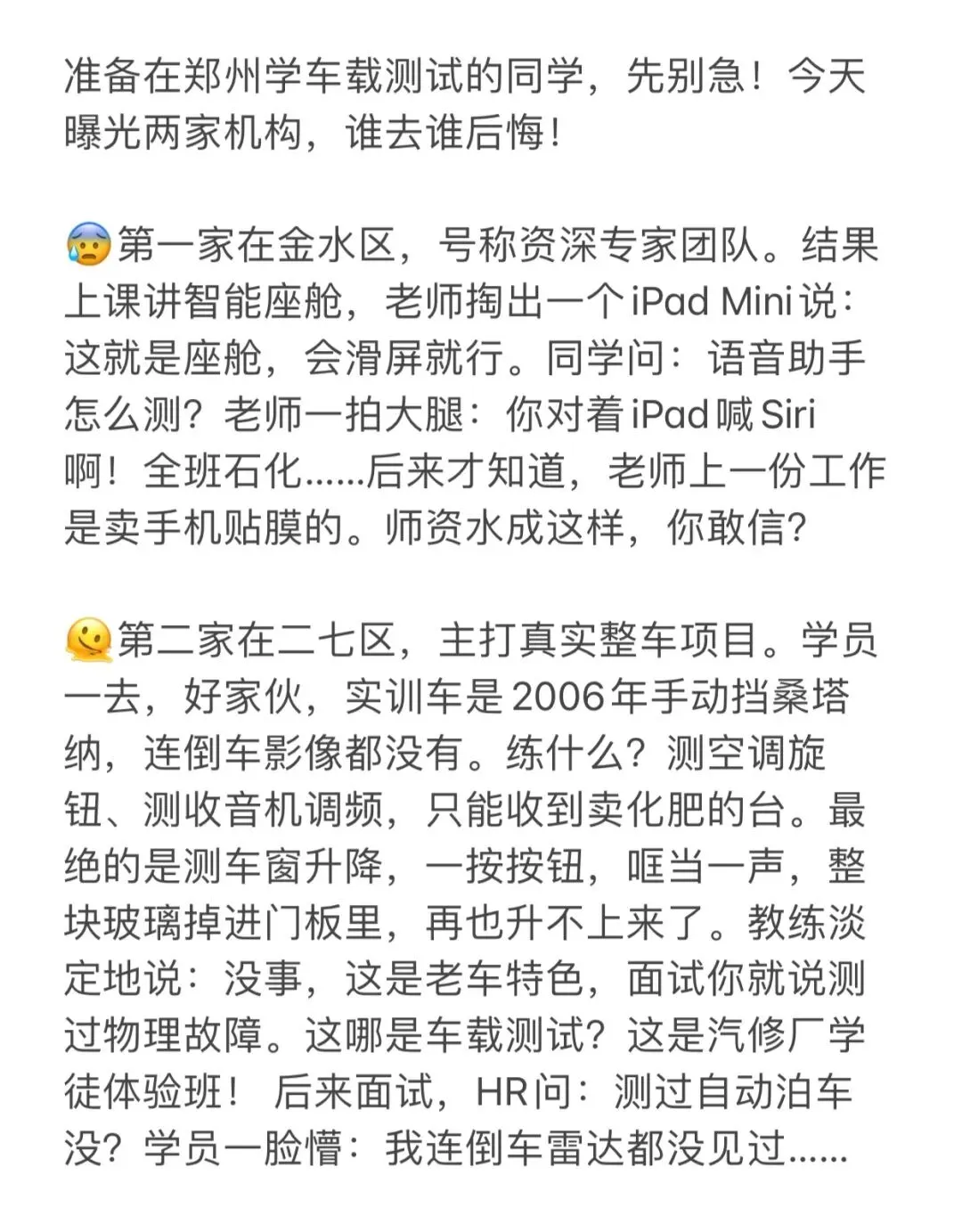 >郑州学车载测试,这两家机构千万别碰!