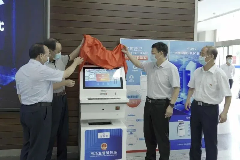 8月4日,经开区个体登记“一件事、秒批 、秒办”智能审批平台启用仪式在区政务服务大厅举行。