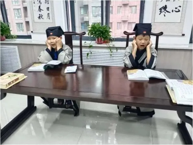 活动中,孩子们穿上国学服,整齐地坐在座位上,一起学习国学礼仪(如图),体验国学文化魅力:“首孝悌,次谨信。泛爱众,而亲仁……”一声声稚嫩而又坚定的诵读声回荡在锦绣社区。