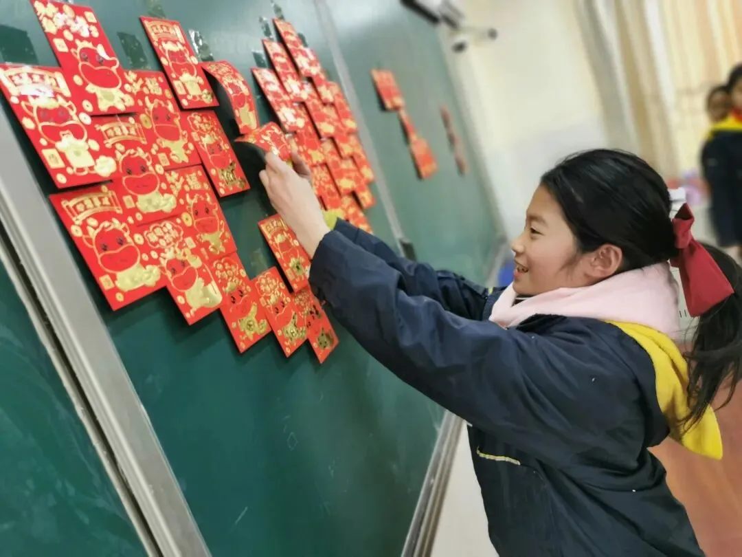 在经开区瑞锦小学,各班级组织的期末散学“庆典”也是丰富多彩,抽红包、发礼物、表演节目、拍照留念,欢声笑语承载的是孩子们一学期以来成长的喜悦。