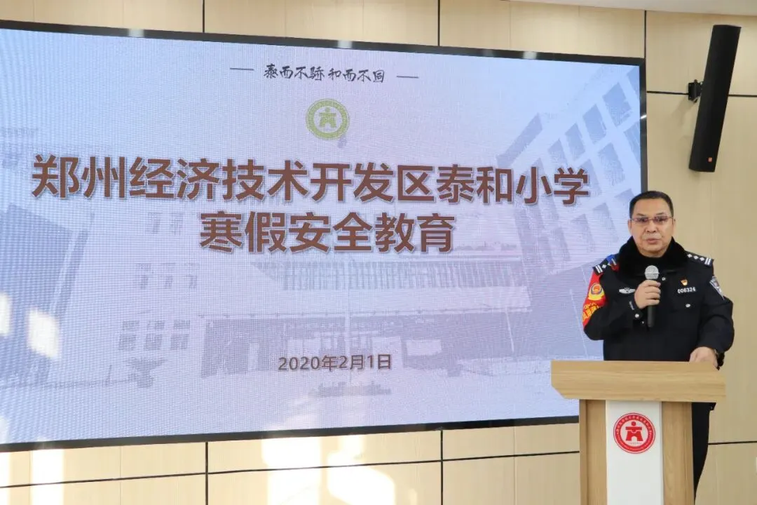在经开区泰和小学,经开区朝凤路派出所商英社区张喜林所长和泰和社区医院刘夏婷医生专程来到散学典礼现场,对全体师生和家长朋友们进行假期防疫安全教育。刘医生针对假期居家和外出防疫,呼吁大家做好假期期间防疫措施;张警官围绕防骗、防溺水安全、交通安全、用电安全、自我保护等方面对师生们进行了假期安全教育。