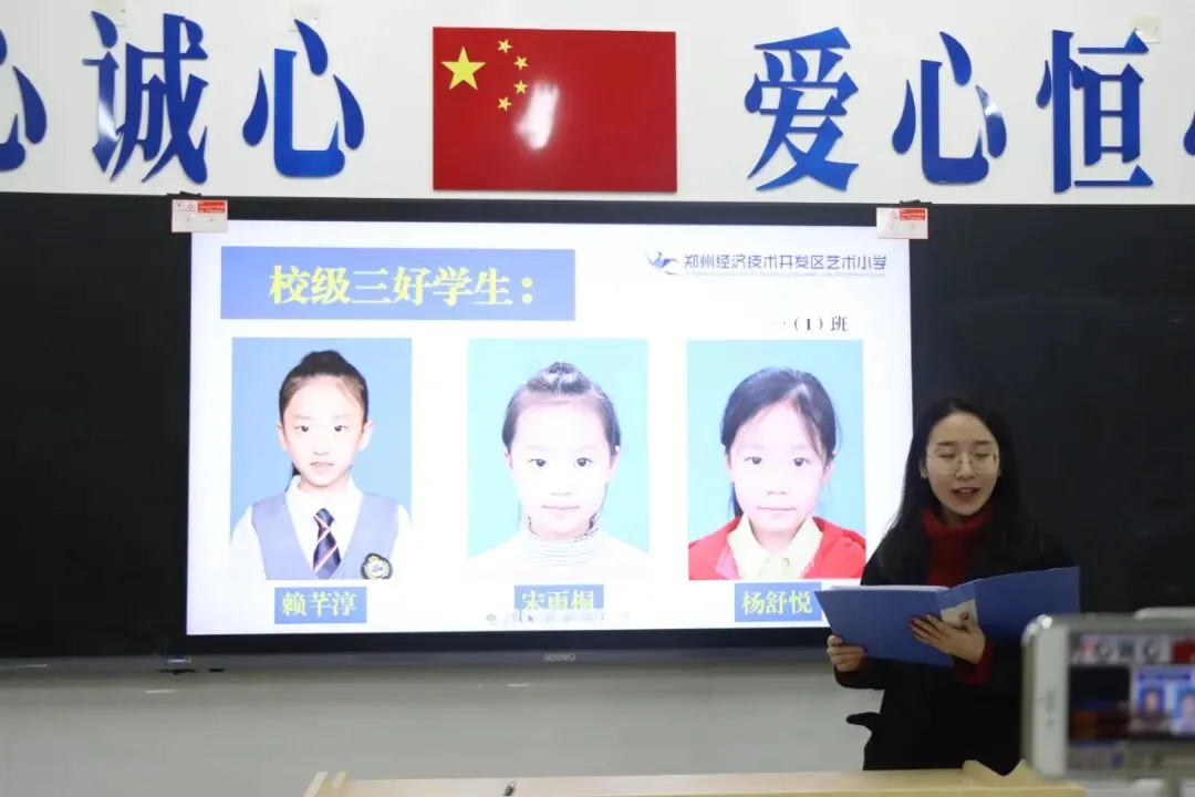 在经开区艺术小学,学校向全体学生提出“六个一”建议:在寒假期间,每个孩子要制定一个详细计划、树立一个安全意识、牢记一个防疫要求、阅读一本课外读物、争做一个孝心少年、学习一项生活本领。典礼仪式上,不仅颁发了“三好学生”、“优秀班干部”,还颁发了“优秀家长”等校级奖项,将敢于挑战、勇于担当、追求卓越、全面发展的信念播种在同学们的心田。