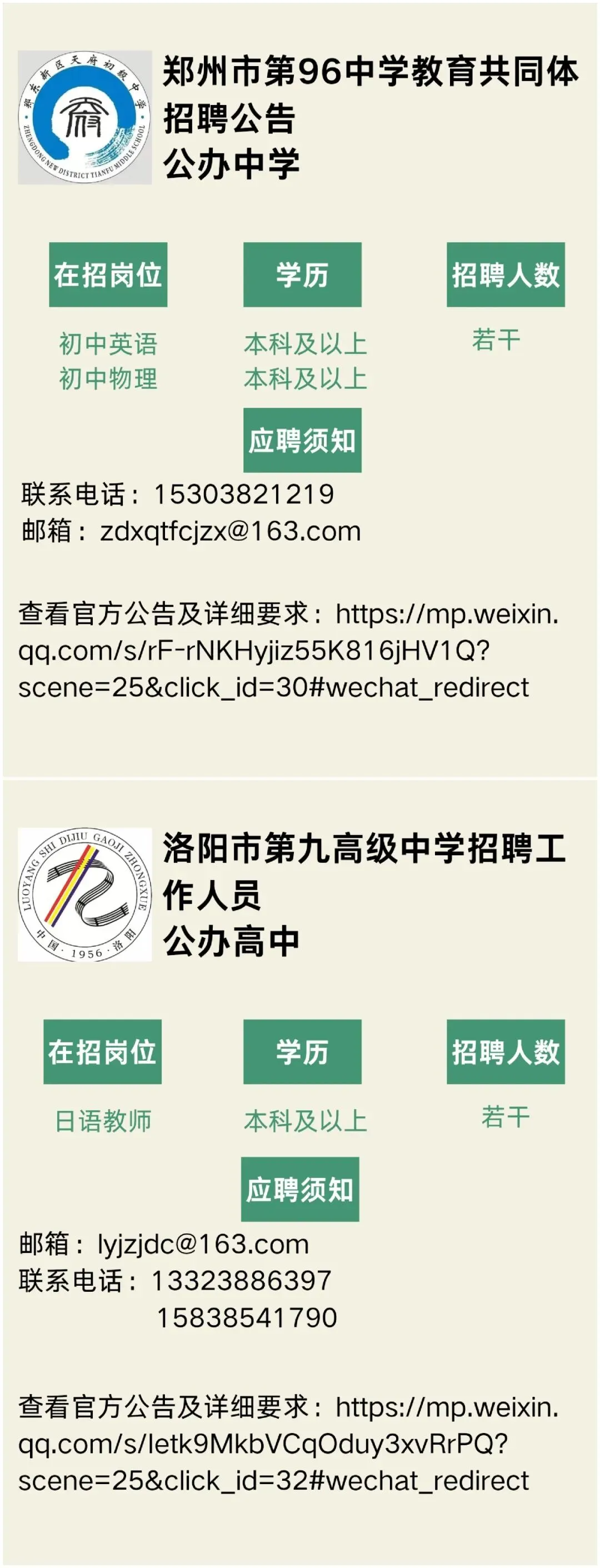 来源|郑州市第96中学教育共同体,洛阳市第九高级中学。(声明:“河南省大中专毕业生就业创业促进会”微信公众号刊载此文,是出于传递更多信息之目的。若有来源标注错误或侵犯了您的合法权益,请及时与我们联系,我们将及时更正、删除或依法处理。)