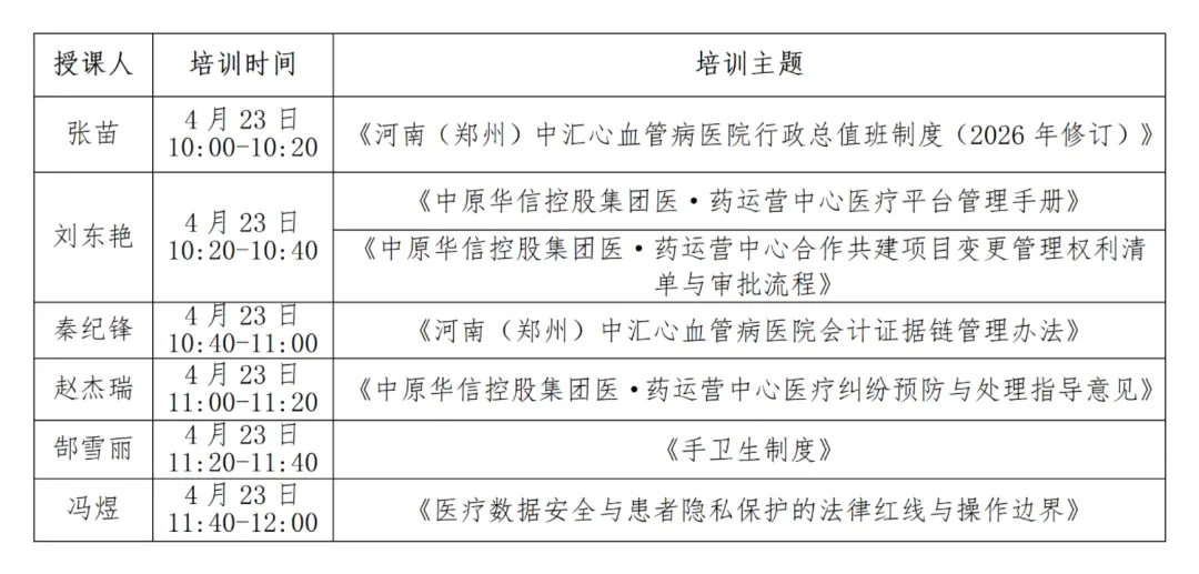八、本次培训由华信创智学堂联合河南(郑州)中汇心血管病医院举办。
