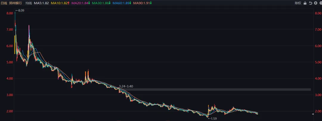 然而在此过程中,郑州银行硬是走出了逆势下跌的行情。截至4月20日收盘,该行A股股价为1.82元/股,总市值为165亿元。