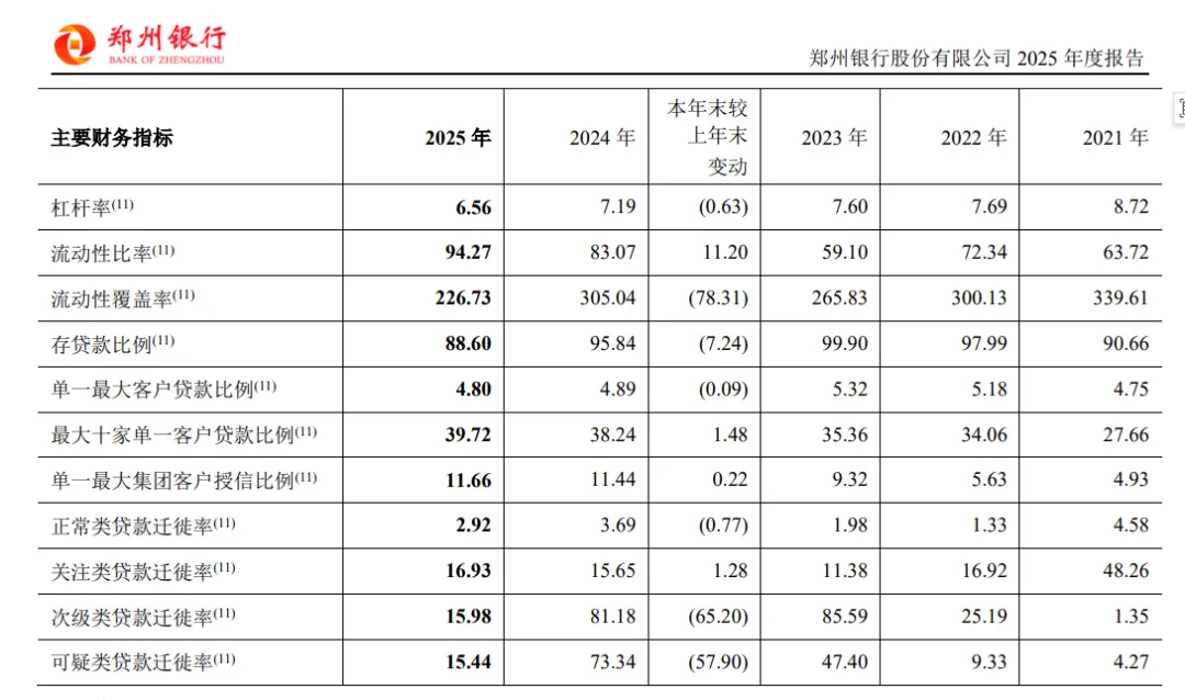 不仅如此,郑州银行还明显偏爱中大型企业。截至2025年末,该行公司贷款总额2805.00亿元,占贷款及垫款总额的68.37%,其中最大十家单一客户贷款占比就达到了39.72%,单一最大集团客户授信比例高达11.66%。