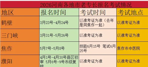 由各地市卫健委官方发布通知可知,河南鹤壁、河南濮阳将于本月截止老专长报名!