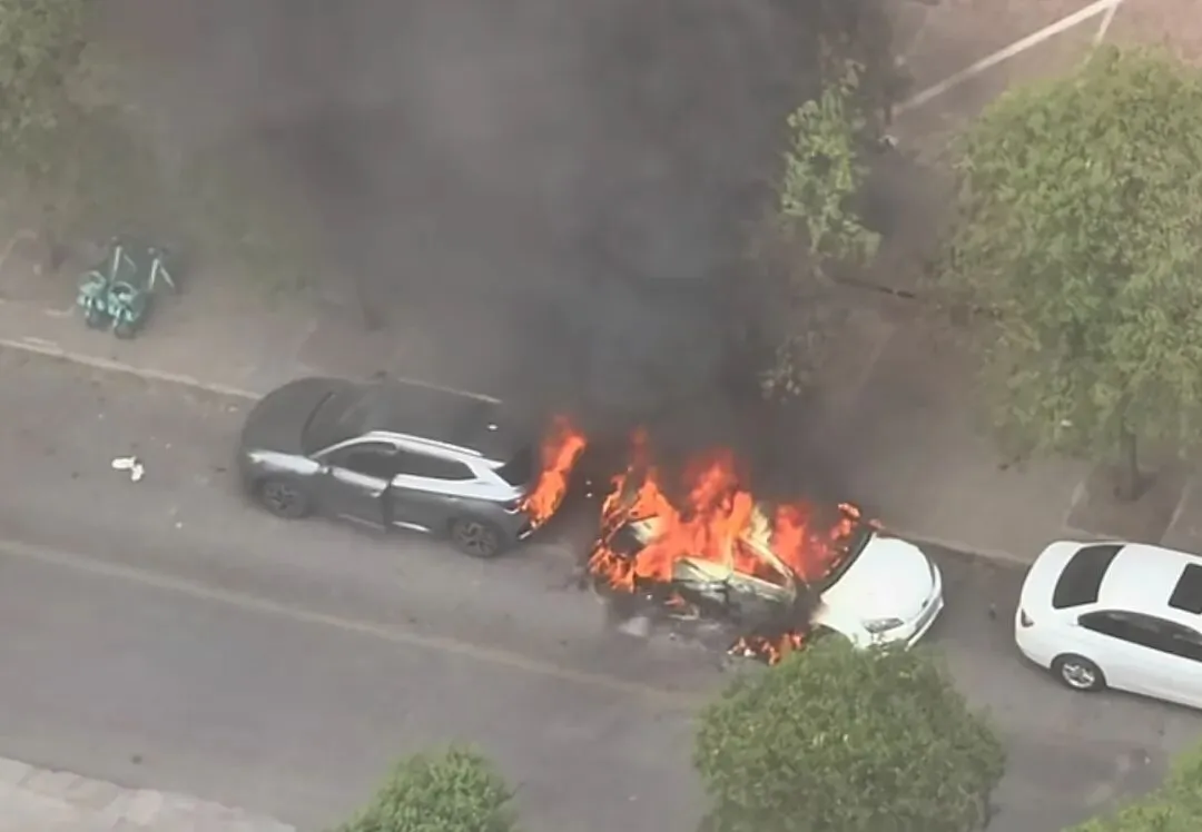 新能源汽车起火引燃后方车辆(视频截图)