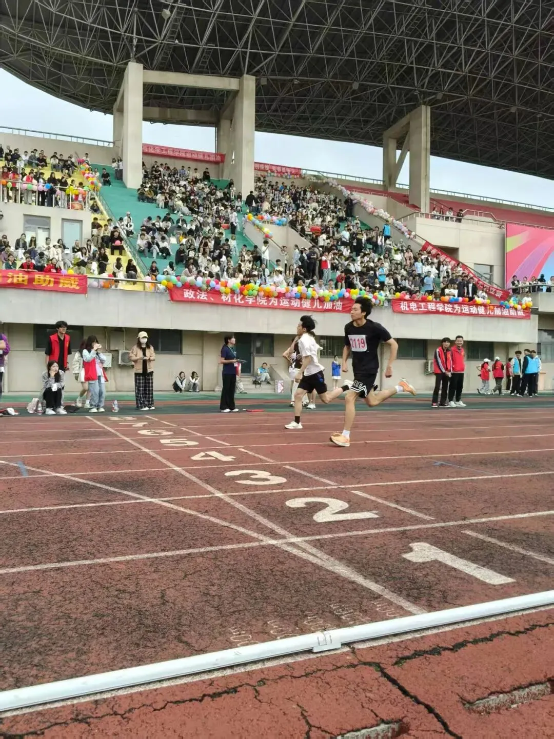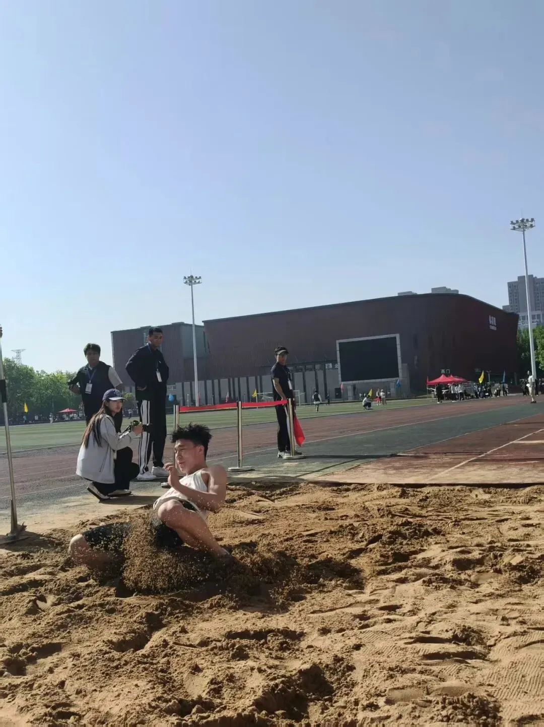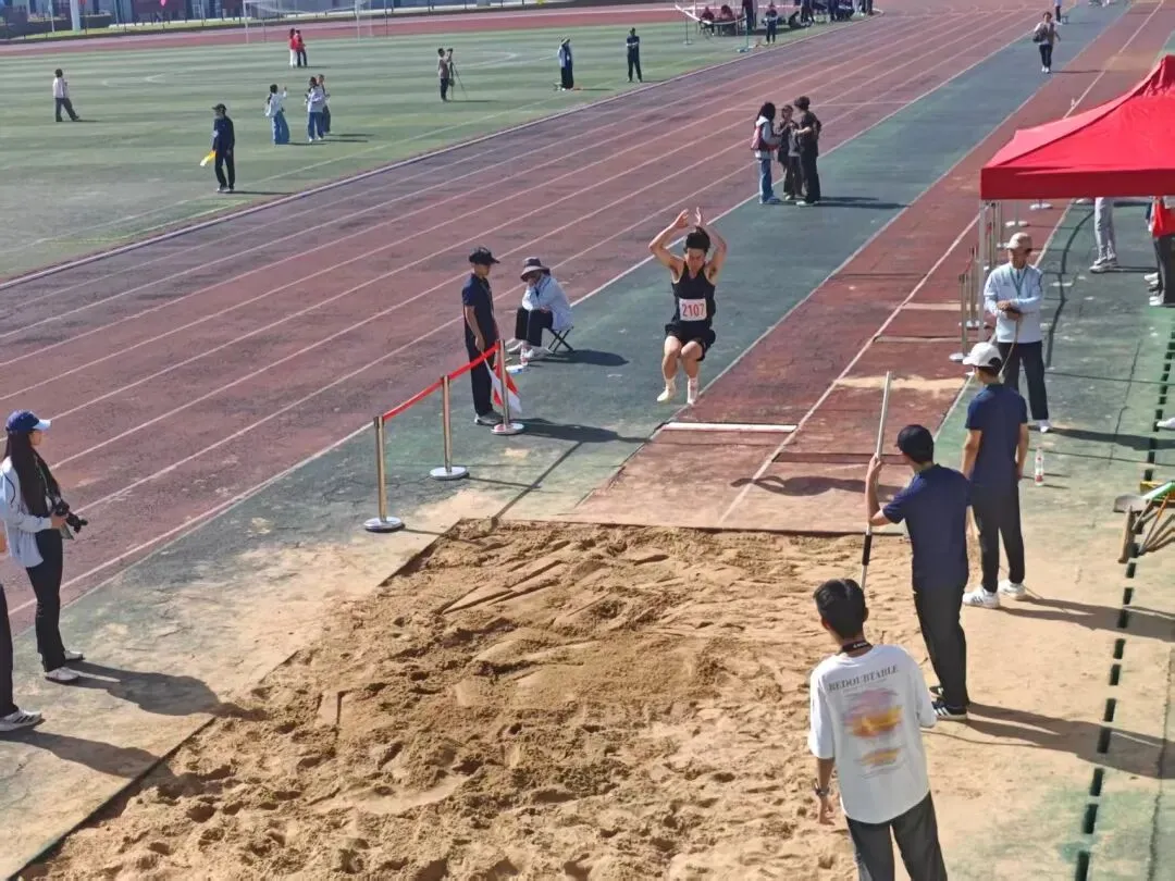在跳远比赛中,我院运动员表现尤为亮眼。助跑、起跳、腾空、落地,动作连贯流畅、舒展有力。每一次冲刺都全力以赴,每一次飞跃都追求更远,每一次落地都力争更好。运动员们凭借稳定的发挥、良好的节奏感与出色的爆发力,在沙坑上空划出一道道优美的青春弧线,充分展现了济职学子的力量、技巧与拼搏精神,赢得现场观众阵阵掌声。
