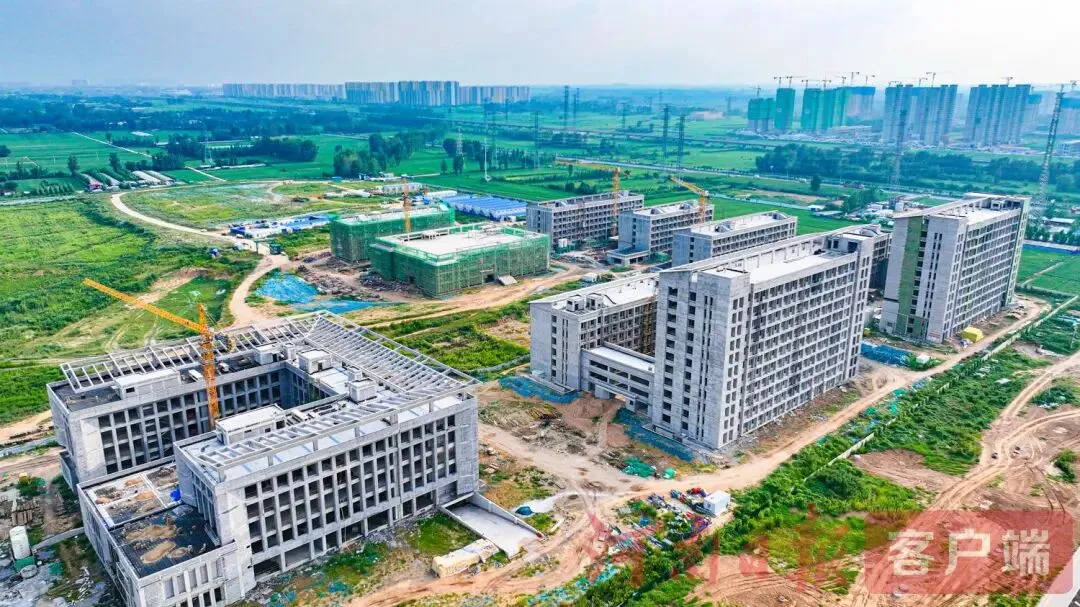 在河南电子科技大学(筹)建设现场,23.69万平方米的一期建筑群已初具规模,二次结构施工如火如荼,三标段桩基工程突破185根。