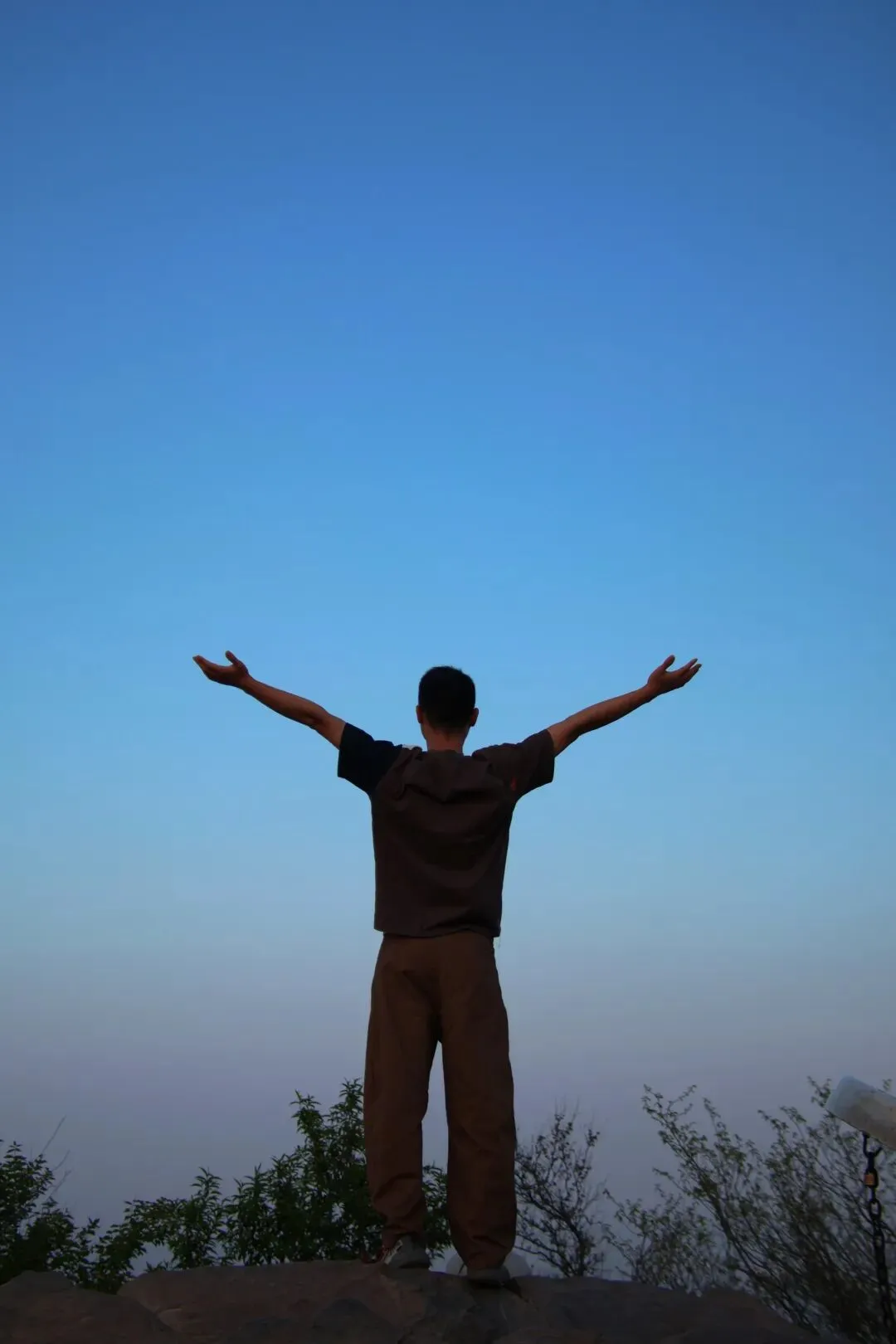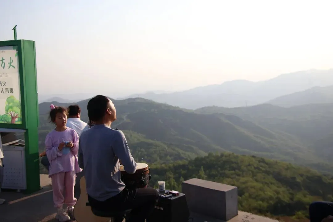 山上有个大哥,拍着手鼓唱着歌,看着像很有故事,说是从外地而来,另一个登山的人说是在泰山上见过他。在观景台的绝佳位置望向远方,唱着歌,那个感觉像是把自己和寰宇融为一体。