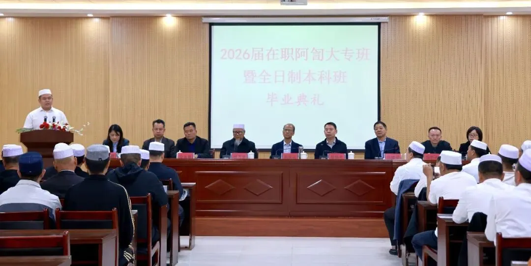 4月16日,郑州伊斯兰教经学院2026届在职阿訇大专班暨全日制本科班毕业典礼在学院礼堂举行。我省40名在职阿訇大专班学员圆满完成全部学业,与河南籍学员一同参加典礼并获颁毕业证书。山东省民族宗教委副主任韩庆新,河南省民族宗教委副主任徐晓光,中国伊斯兰教协会副会长、河南省伊斯兰教协会会长、郑州伊斯兰教经学院院长杨万里,山东省伊斯兰教协会会长马银平等鲁豫两地有关领导出席典礼并讲话。