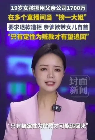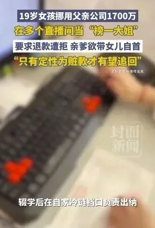 近日,郑州一家民营企业的负责人朱先生,在反复思量后,最终决定带着女儿前往派出所投案。事件的起因是其女儿小朱,作为公司财务人员,在一年多的时间里,通过公司账户挪用了高达1700万元的资金,全部用于在某社交平台打赏网络主播。据了解,小朱今年19岁,中专肄业后进入父亲的公司工作,并逐步接手了部分财务事宜。去年夏天,朱先生在核对账目时,首次发现了几十万元的资金缺口。面对询问,小朱承认这笔钱被她用于打赏主播。然而,这仅仅是冰山一角。随着进一步核查银行流水,一个更惊人的事实浮出水面:从去年7月到今年11月,小朱个人银行卡在该平台累计消费超过1700万元,她在多个直播间都成为了打赏金额最高的“榜一大姐”。这些资金并非其个人积蓄,而是公司的经营性款项。面对如此巨大的窟窿,朱先生陷入了极度的痛苦与困境。公司因此面临严重的资金链断裂风险,濒临破产。他向媒体坦言,这笔钱是公司的“身家性命”,无法向生意伙伴和债主交代。在咨询法律人士后,他了解到,只有通过报案,使被挪用的款项在法律上被认定为“赃款”,才有较大可能启动追缴程序,为公司挽回部分损失。正是出于这种现实的考量,这位父亲才做出了带女儿自首的决定。目前,案件已由公安机关受理,正在进一步调查中。