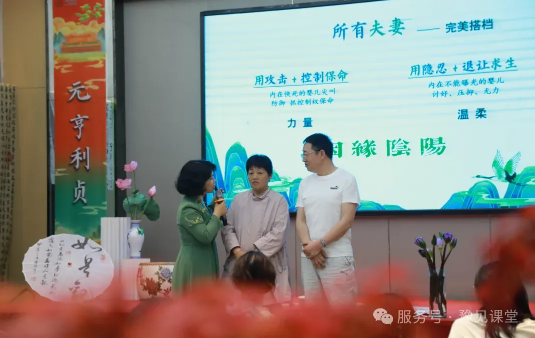 《乾坤之道》环节,以东方阴阳智慧为根基,深入探索新时代夫妻关系的平衡幸福之道,引导学员理解“夫守乾道、妻守坤道,刚柔相济、互为成就”的相处真谛。