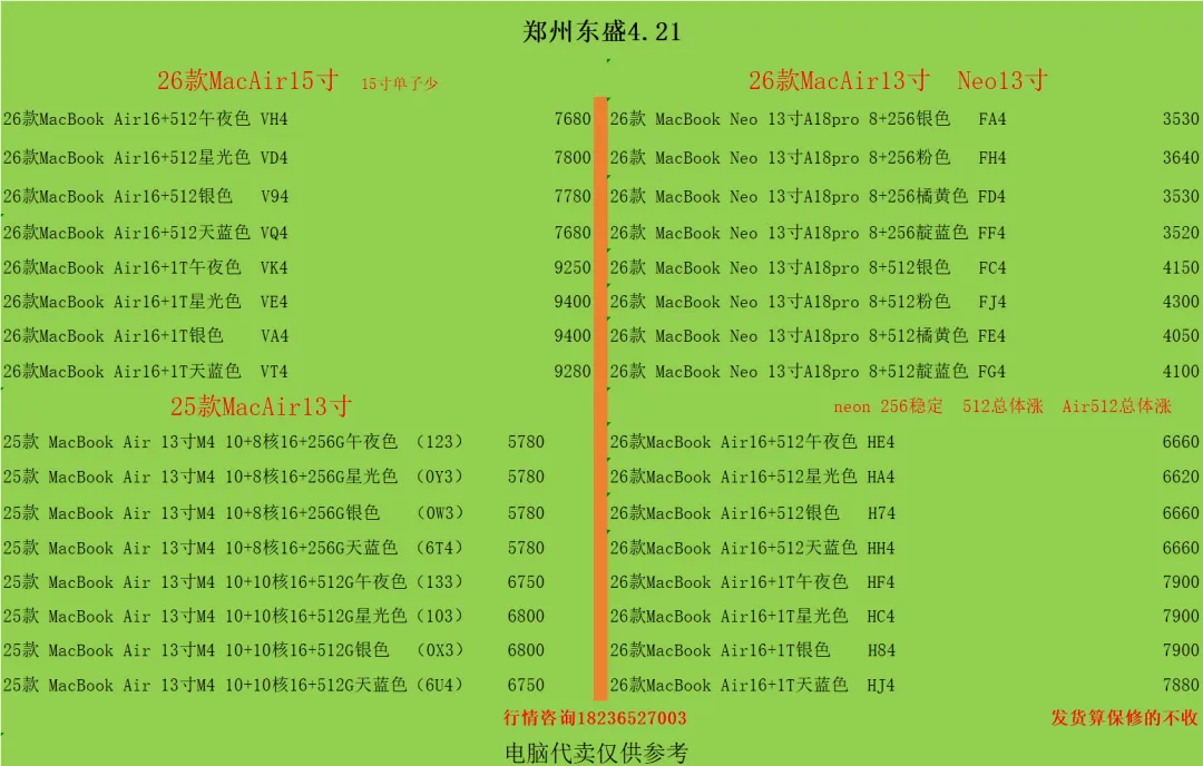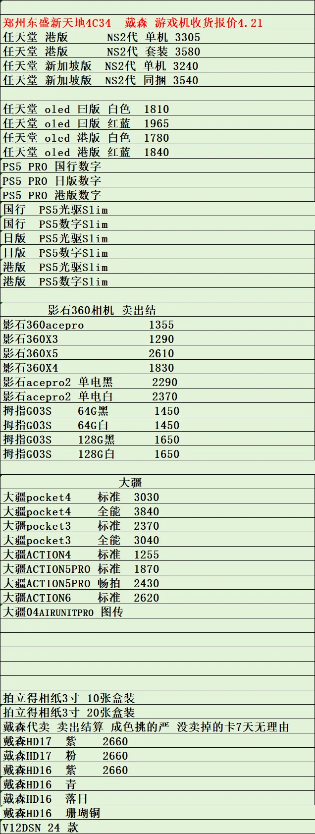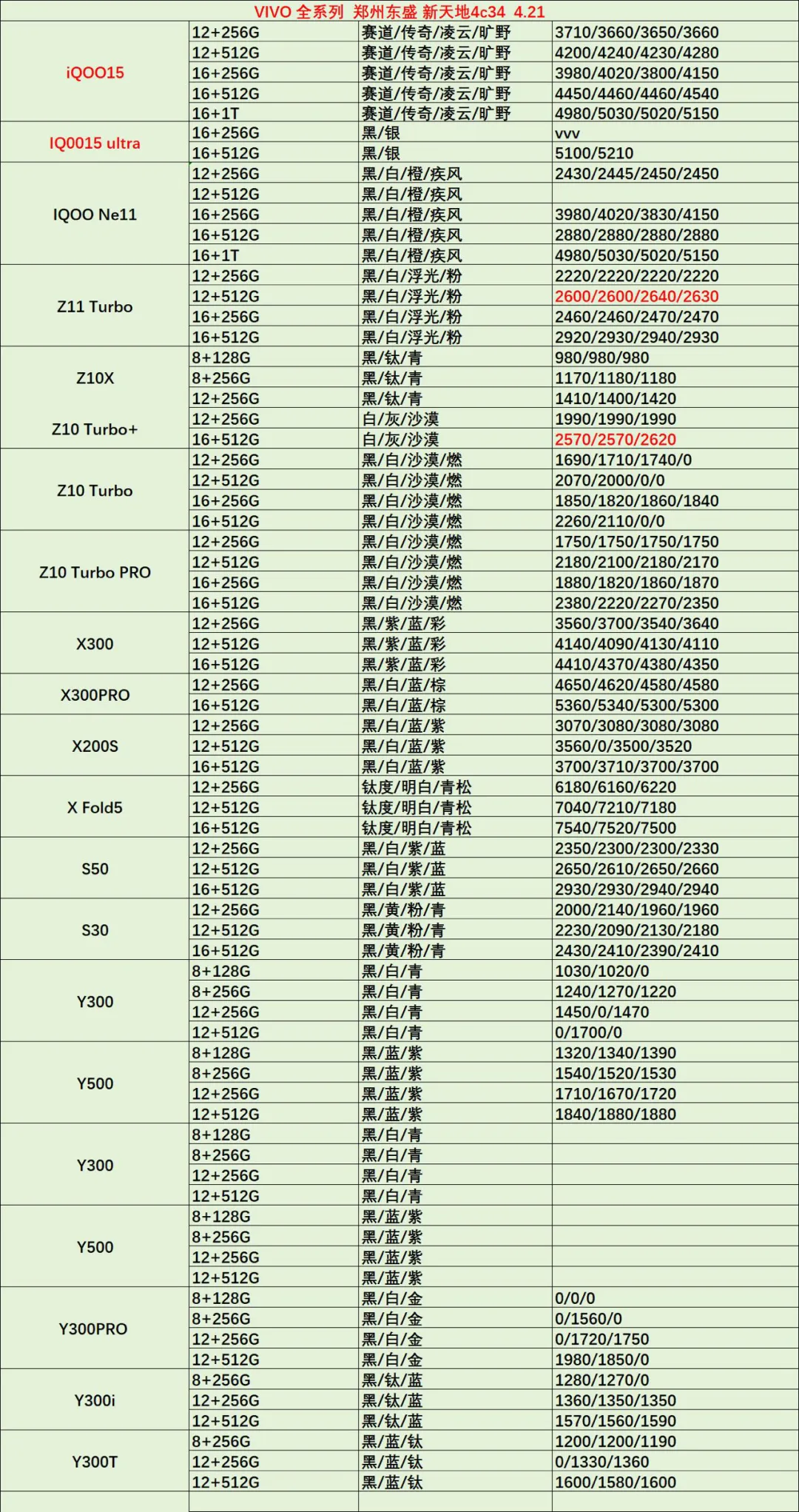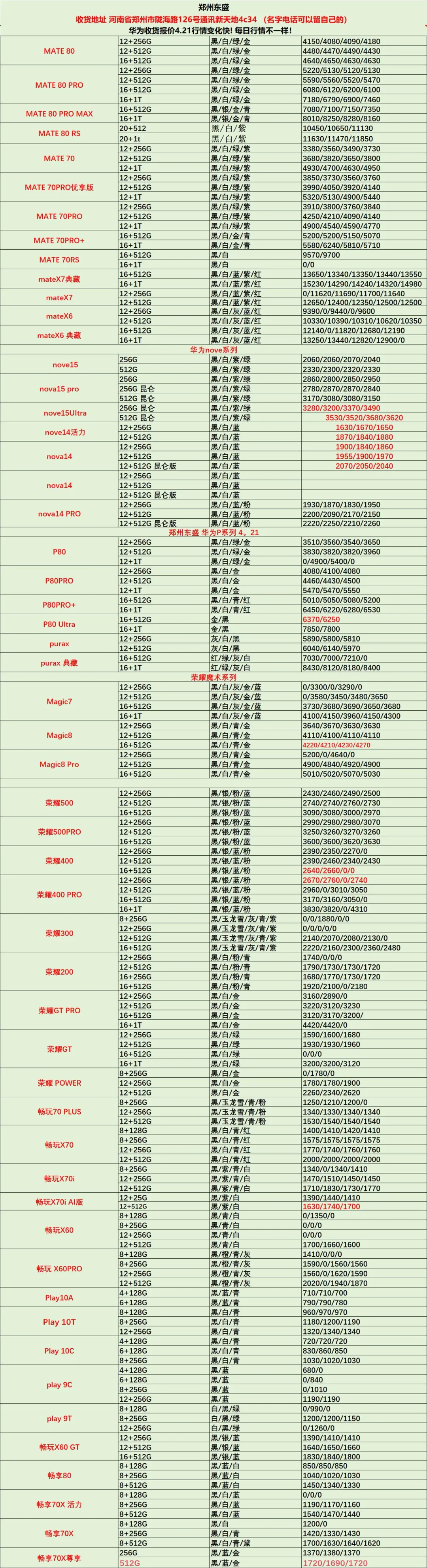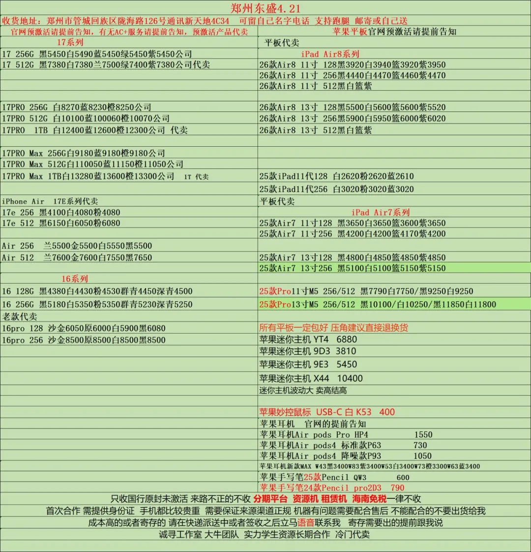 郑州东盛通讯新天地4.21号行情