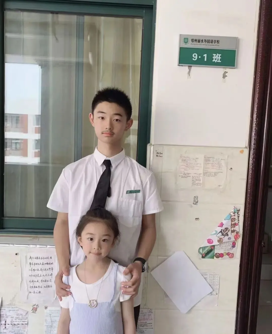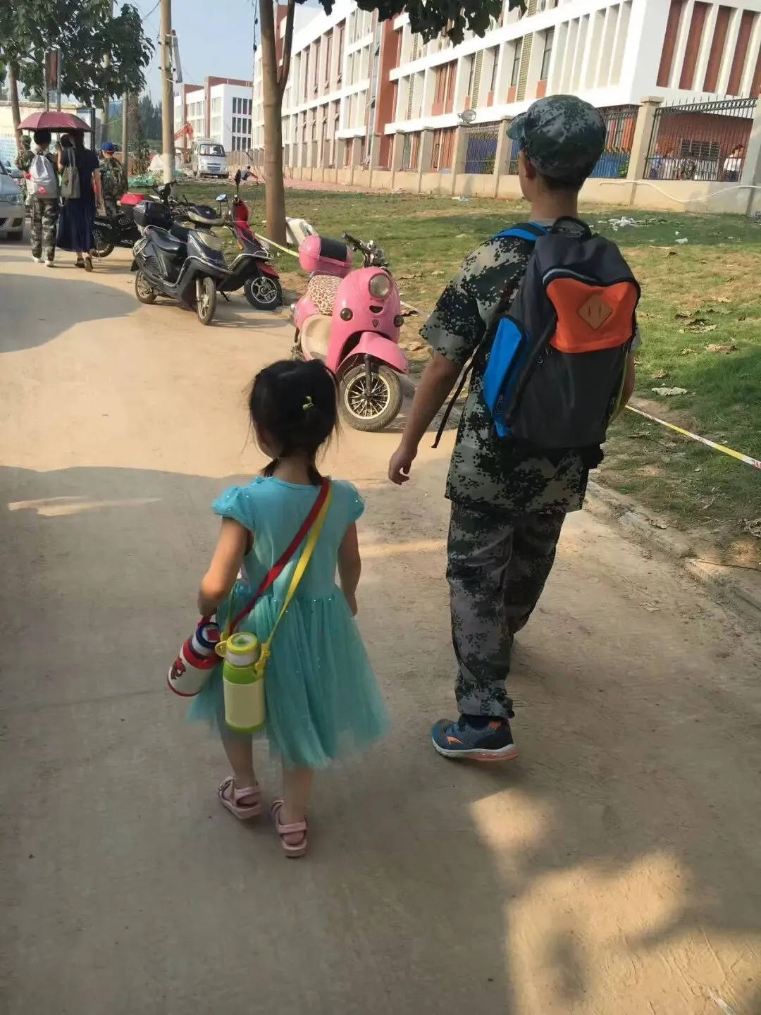 故事的起点,始于2016年,儿子小升初因1.5分之差被推荐到这所学校。当初,我们也是怀着忐忑的心情送儿子入校。毕竟这是一所新学校,连学校门口的路都没修好。开学了,学校食堂和宿舍设施还没完善好,需要走读。每天还要带着女儿去接儿子放学,第一周是军训。那天天气很热,哥哥一出校门,妹妹赶紧帮着哥哥背水壶。这一幕,成了我们家与校园最珍贵的初心剪影。