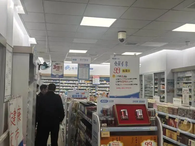 4月21日晚9时,上游新闻记者在河南省郑州市金水区园田路老百姓大药房看见,当地医保、市监等部门执法人员还在店内调查取证。
