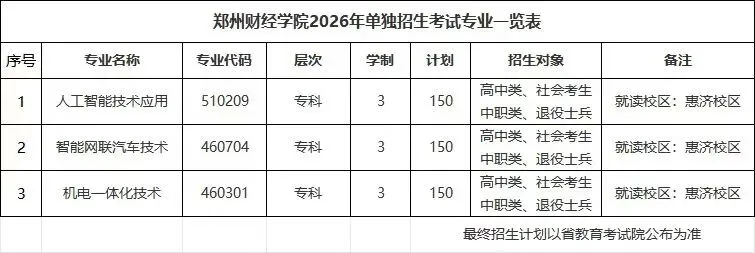 单独考试招生拟录取名单由学校单独招生工作领导小组审核、批准后,在“郑州财经学院招生信息网”(https://zb.zzife.edu.cn/)公示,公示期5个工作日。对拟录取结果有异议者,需在公示期内的前3个工作日,携带本人身份证、准考证到学校(惠济校区)招生办C103申请复议,单招工作监督小组将按规定进行审核处理,逾期不再受理。待公示结束后,上报河南省教育考试院审批、备案。