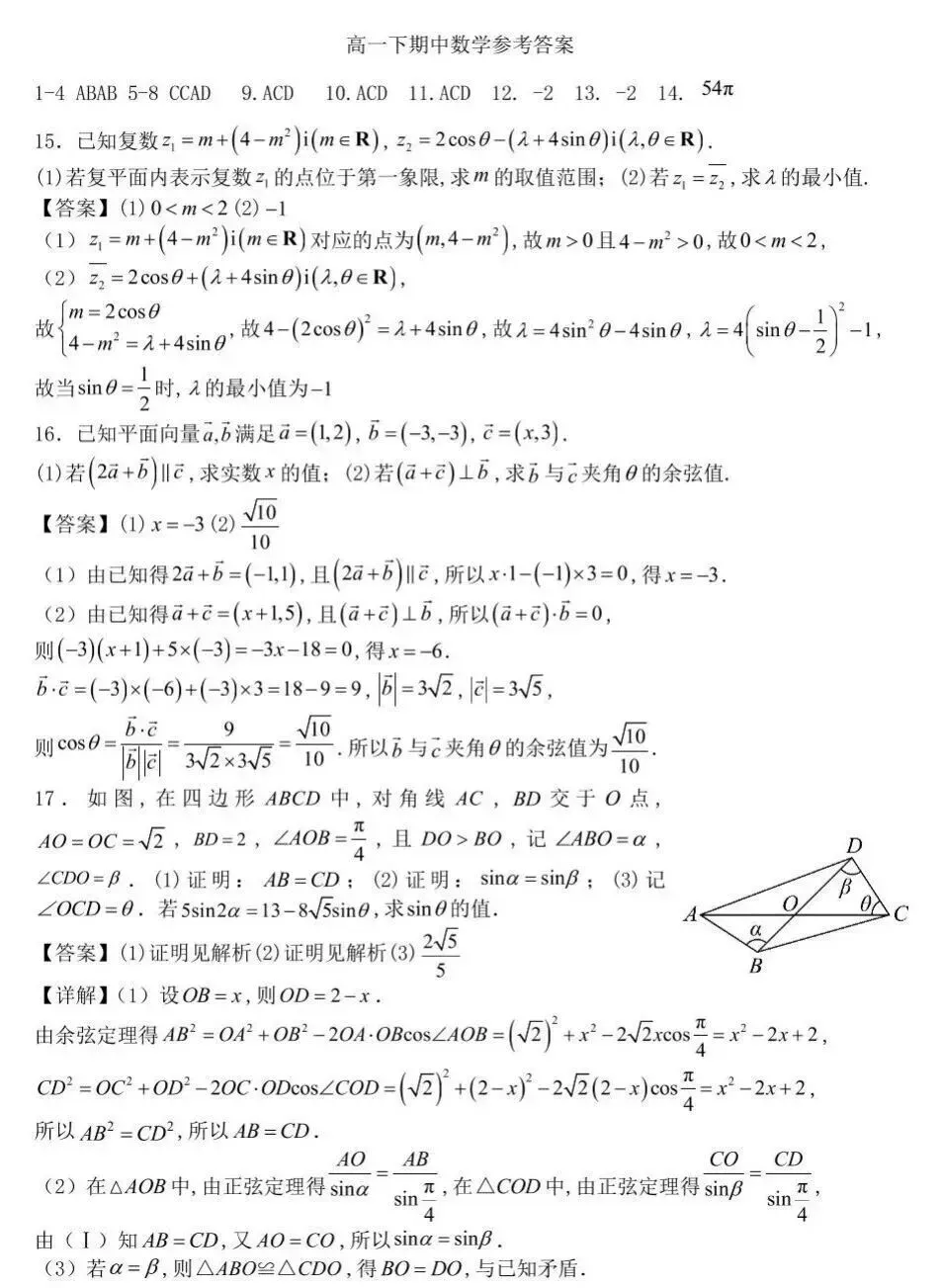>河南省郑州外国语学校2024-2025学年高一下学期期中数学试卷及答案