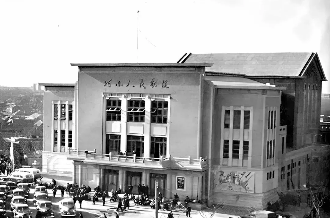 照片上一栋大楼写着河南人民剧院,这是郑州最早的齐全剧场,建成不久,各种演出话剧折子戏全搬上来,戏迷到点就骑自行车赶,门口总有人排队候着进场,那会儿大事小事都能上台表彰,和现在动不动露天音乐节没法比,老式剧场气质真淳。