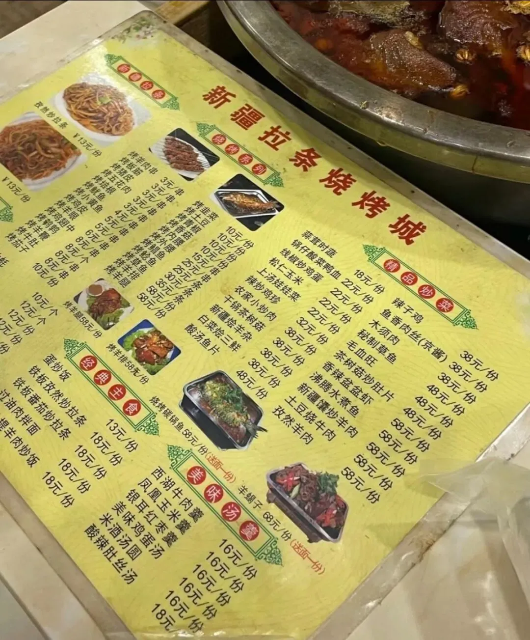 菜品:他家主打就是孜然炒拉条还有番茄炒拉条,大人就吃孜然味的,小朋友女生可以吃番茄味的,烧烤也可以点几串吃一吃,凉菜一般,人均30元左右。