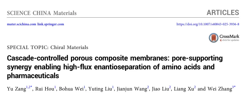 本研究中,团队创新性提出“级联反应可控合成”与“孔道-支撑协同”双策略,成功制备出一系列孔道结构可调的多孔复合膜,系统阐释了其协同增效机制,最终实现了多种氨基酸及手性药物的高效、高通量对映体分离。