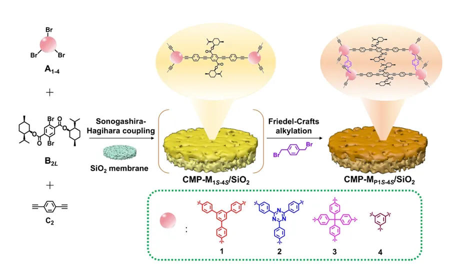 在制药与精细化工领域,手性分离是获取高纯活性产品的关键,而传统技术长期受限于“高选择性”与“高通量”难以兼得的固有矛盾。手性共轭微孔聚合物膜的出现,它通过可编程设计的孔道结构与刚性共轭骨架,在纳米尺度上构建出同时具备精准分子识别与快速传质能力的分离界面,从而在材料层面实现了筛分精度与传递效率的协同。这不仅为高效、连续的手性分离工艺奠定了基础,也推动着手性制造向更绿色、可持续的方向演进。