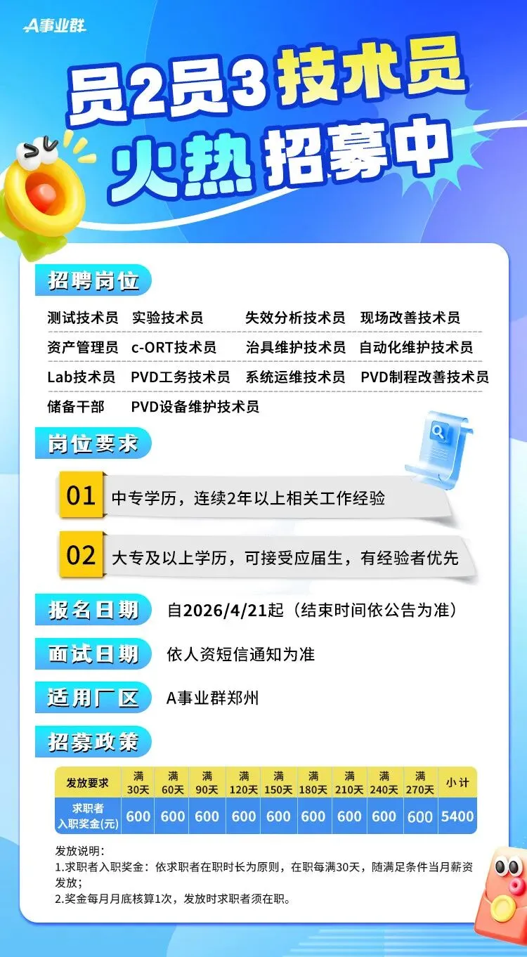 郑州富士康技术工开始招聘啦,工作轻松,待遇好,离家近。