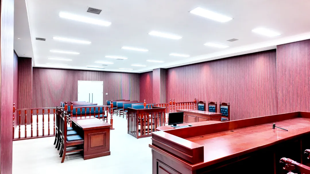 场地严格依照真实法庭标准1:1搭建,整体空间开阔规整、氛围庄严肃穆。完整配备法官席、审判席、控方席、辩方席、被告席、旁听观众席,配套法台、法槌、庭审防护护栏、制式官方背景墙、专业庭审桌椅等全套设施,场景布局、道具细节均与真实法庭高度一致,无任何敷衍简化。