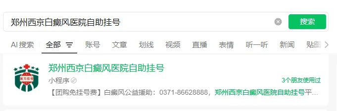 ② 小程序:郑州西京白癜风医院自助挂号 微信搜对应小程序,直接预约;