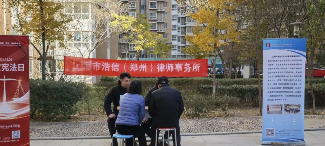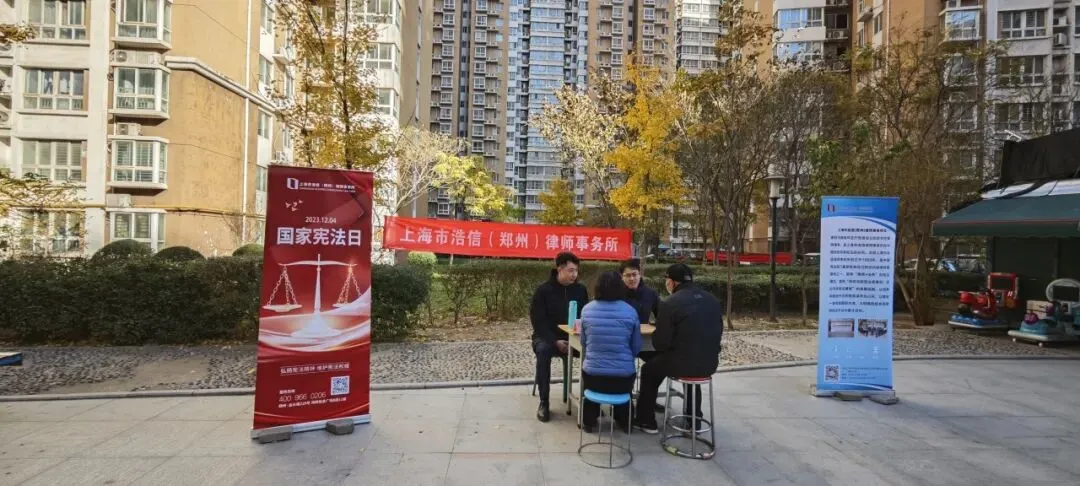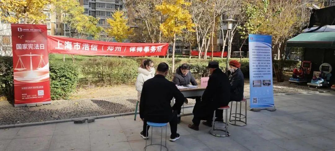 2023年12月4日是我国第23个国家宪法宣传日,上海市浩信(郑州)律师事务所王志丹律师、赵兴升律师带队走进呈祥社区,开展国家宪法宣传教育活动,彰显宪法权威,弘扬宪法精神。
