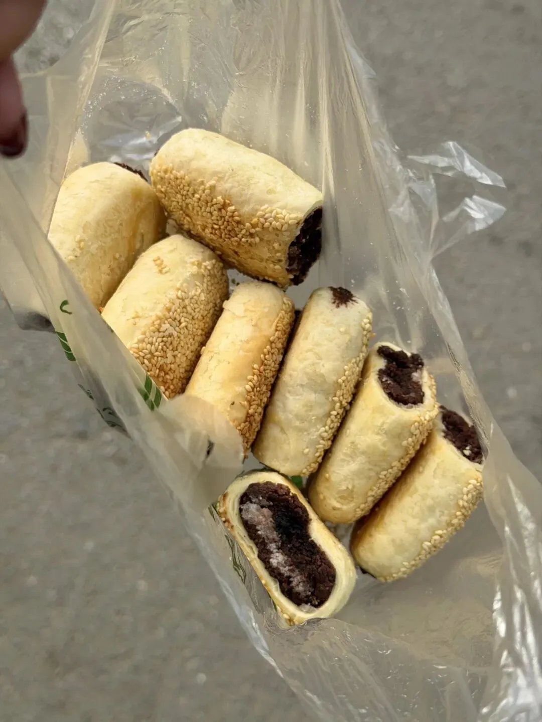 我一开始还没当回事,这不就是长条形的酥饼吗,能好吃到哪儿去啊。你看这模样,圆不溜秋一根,外面沾满了白芝麻,黄灿灿的看着挺普通啊。