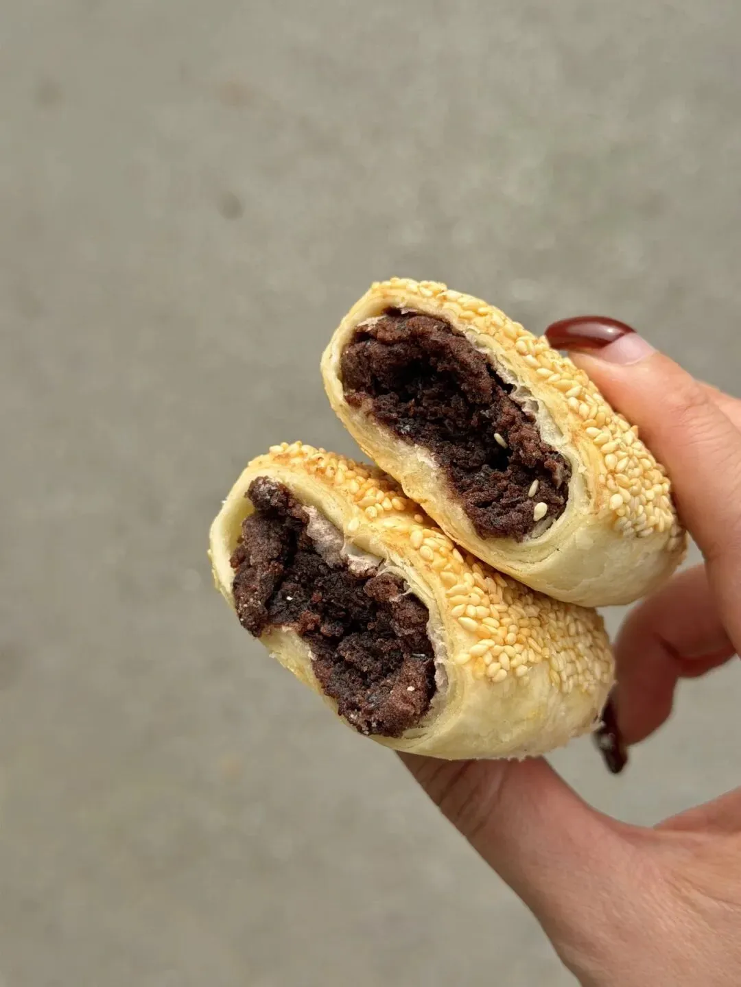 后来又吃了豆沙的,也好吃,豆沙更细腻一点,甜淡淡的,配着掉渣的酥皮,一口下去真的沦陷了。