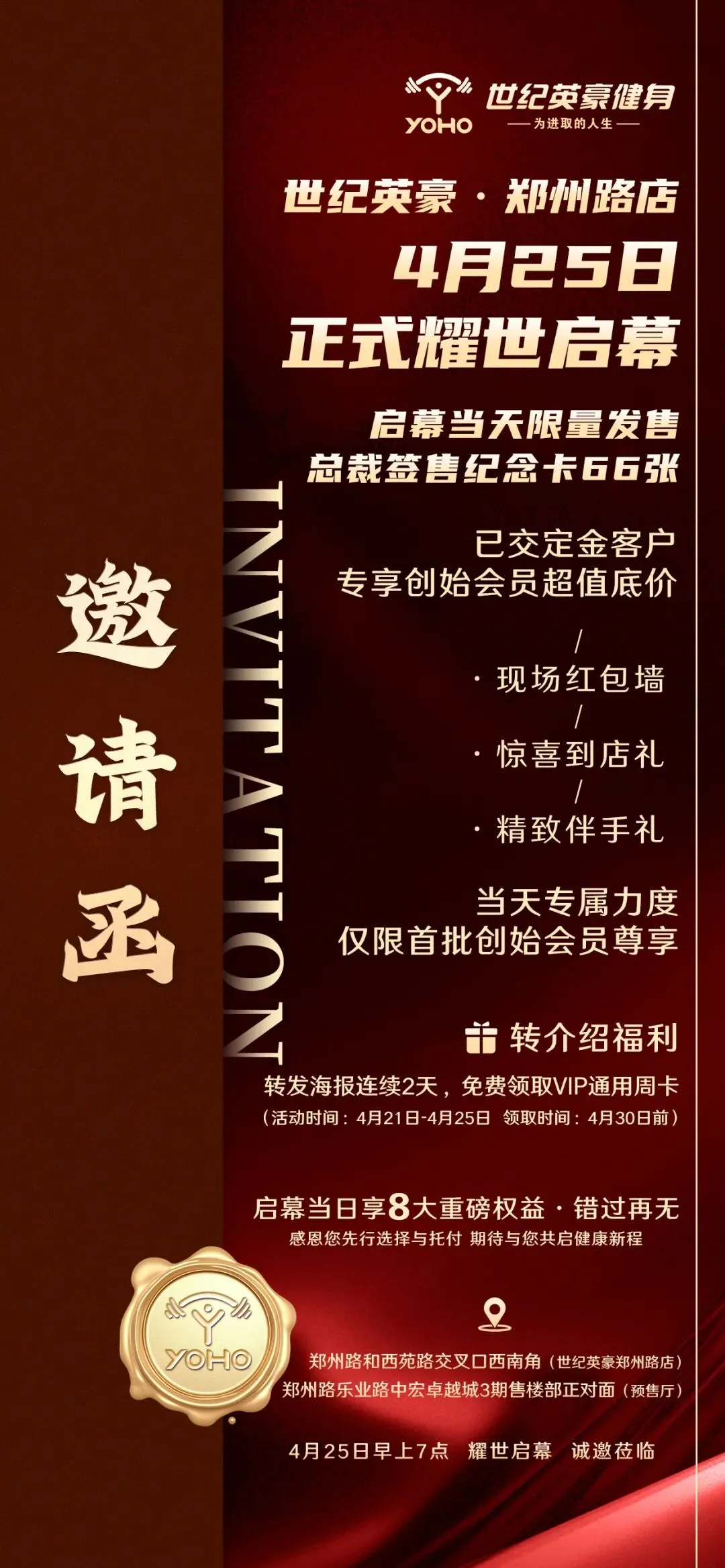 世纪英豪郑州路店,以专业致敬热爱,以诚意回馈信赖,诚邀各位贵宾莅临,共启轻奢健身新体验,共赴健康之约!